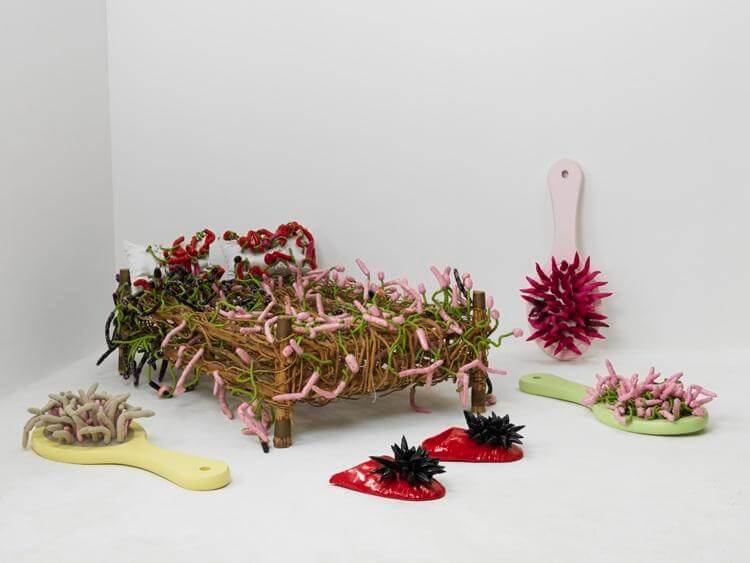 Pink pink dreams, satin, beads, fabric, inspired by Liang Tao’s Luofu Dream: Pink Pink (2006)