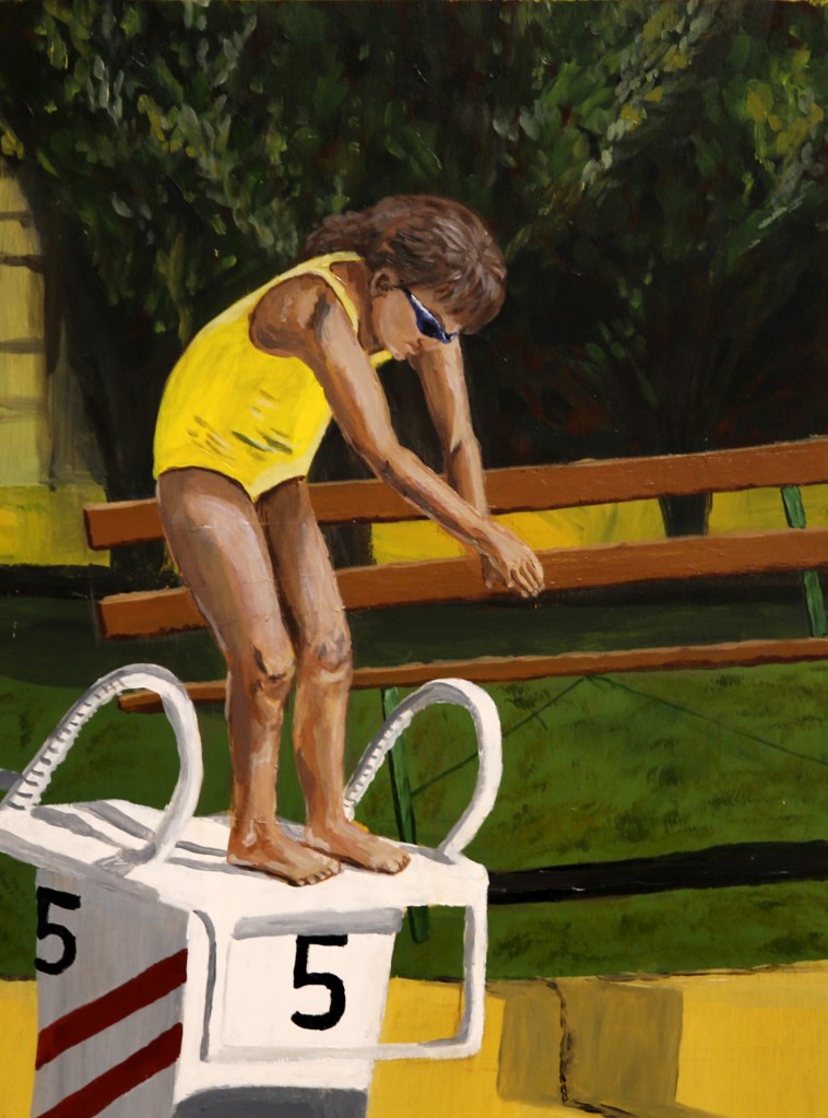 On your marks, acrylic paint on wood panel, 405mm x 305mm, 2022